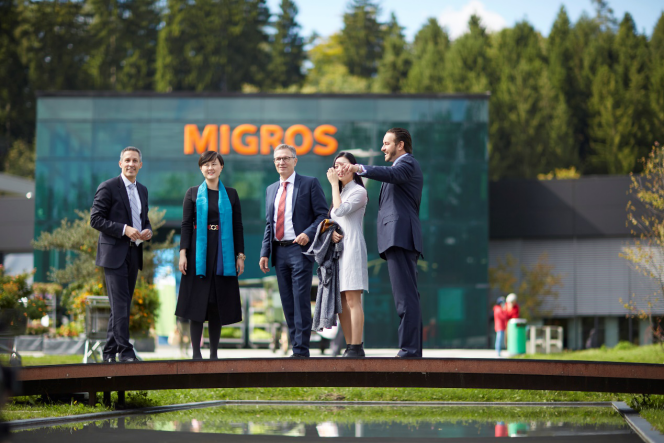(图片: M-Industry CEO Walter Huber和网易考拉CEO张蕾共同在Migros集团的品牌发源地Orange Garden栽下一棵名为“中国女孩”的树苗,寓意双方共同培育,一起发展。)